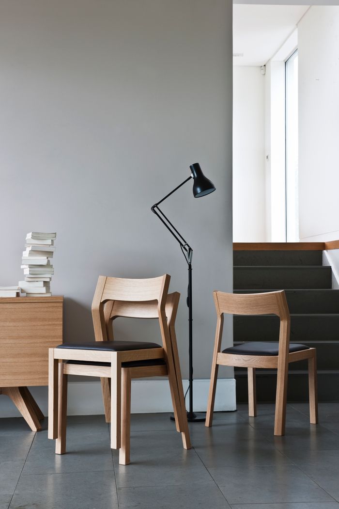 The Profile Chair was designed by Matthew Hilton to accompany his award-winning Cross Extending Table. Crafted from solid timber, this well proportioned chair features a soft upholstered leather seat pad, splayed legs and a recessed back which ensures it is extremely comfortable to sit in for extended periods of time.