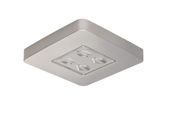 Square, extra slim emergency luminaire. The frame, manufactured in aluminium, in addition to the heat sink is the support for the electronic system, the batteries and the optical group. The combined use of specific lenses and reflectors ensure optimum performance in open area lighting and escape routes. Suitable for ceiling mounting. Consists of a LED technology light source that is switched on if the mains power fails.